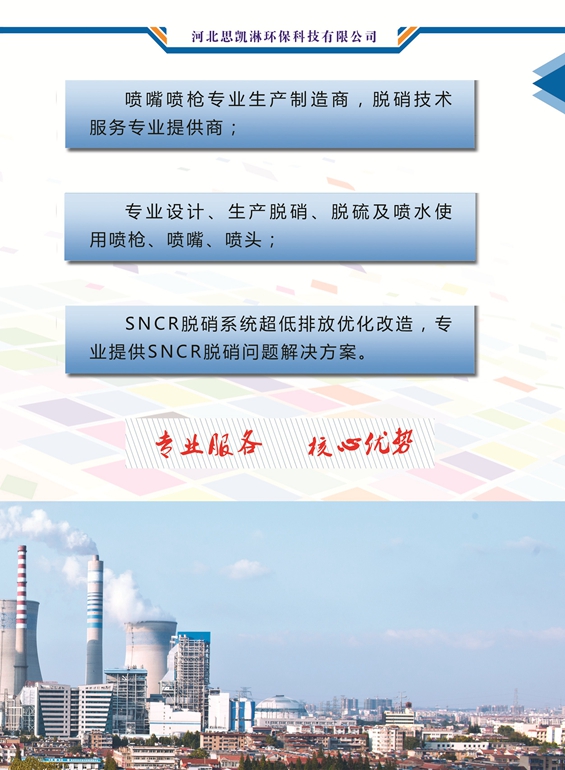 河北思凱淋環(huán)保科技有限公司專注脫硝改造, 脫硫脫硝噴槍廠家集環(huán)保工程設(shè)計(jì),生產(chǎn),制造,安裝,售后,服務(wù)于一體的生產(chǎn)企業(yè),安裝企業(yè)需求標(biāo)準(zhǔn)設(shè)計(jì),精心制造,響應(yīng)國家節(jié)能,利廢,環(huán)保的號召,我們主營脫硝改造,主要適用于各種鍋爐脫硝排放,硫,酸,堿,煙霧等廢氣脫硝處理,我們以優(yōu)秀的技術(shù)力量,先進(jìn)的生產(chǎn)設(shè)備,完善的檢測程序,龐大的銷售網(wǎng)路,高質(zhì)量的售后服務(wù),為企業(yè)奠定了堅(jiān)實(shí)的發(fā)展基礎(chǔ),質(zhì)量贏得市場,誠信鑄就品牌。
